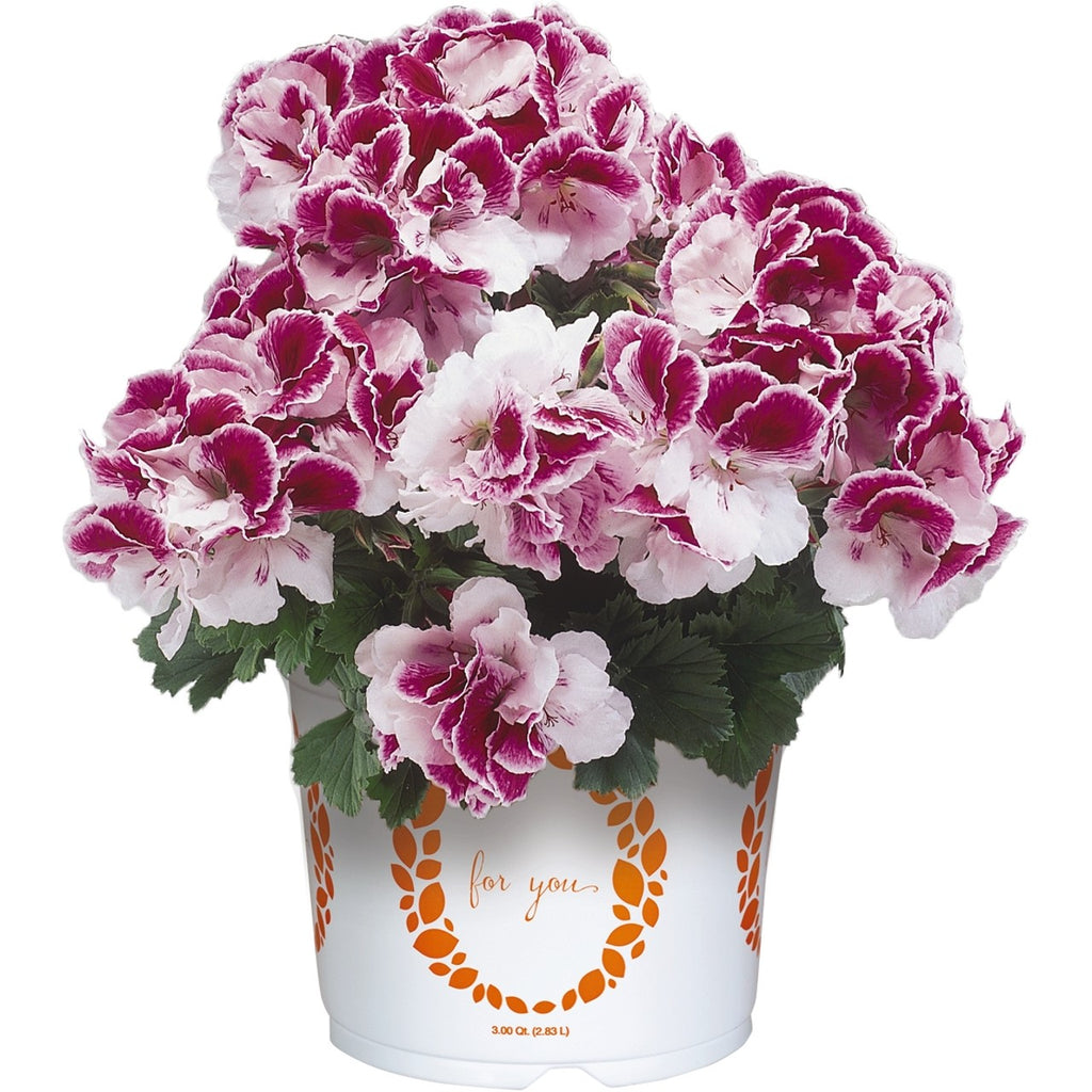 Regal Geraniums, also called Martha Washington Geraniums, grow well in morning sun or filtered light. Avoid full sun during the afternoon. Keep soil evenly moist and remove spent blooms.